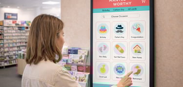 Demand for personalised greeting cards is increasing rapidly, but customers are often pushed towards online platforms due to the lack of a convenient in-store option. A self-service kiosk addresses this by enabling personalised, on-demand card printing directly in your store. Cards are printed on demand, eliminating waste and unsold stock. Personalised cards achieve significantly higher margins while also reducing the need for constant stocking, rotation, and tidying of card shelves.